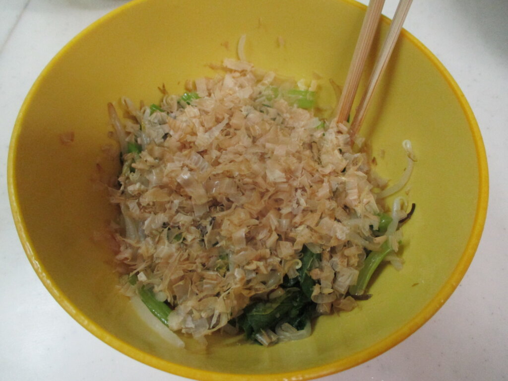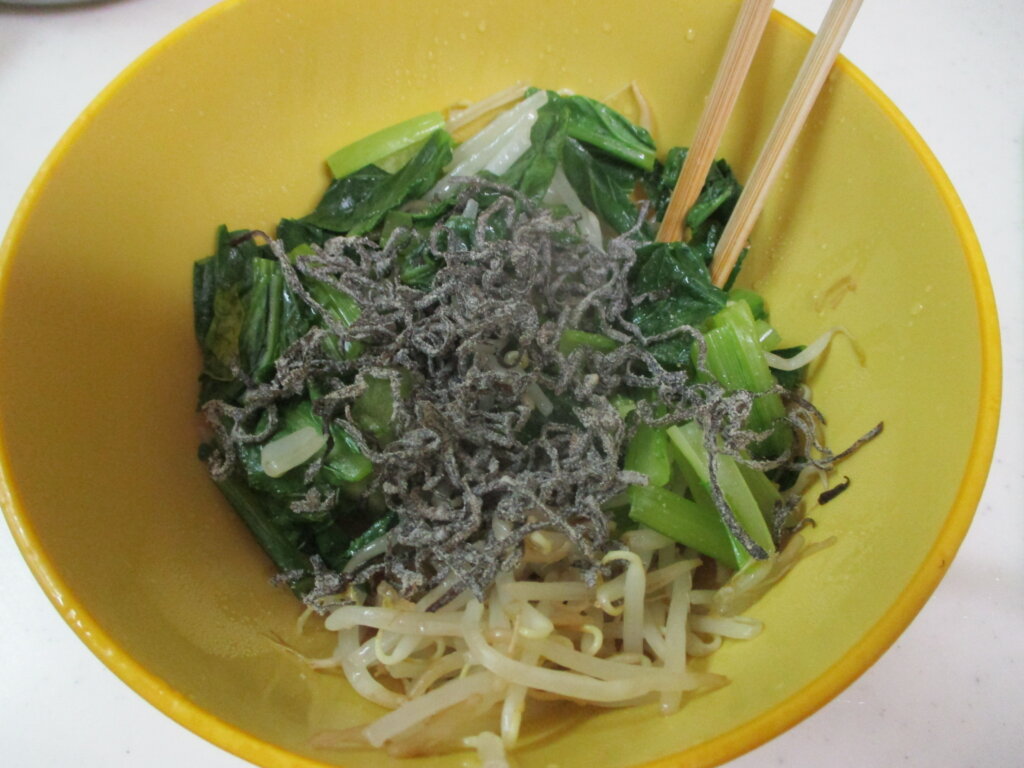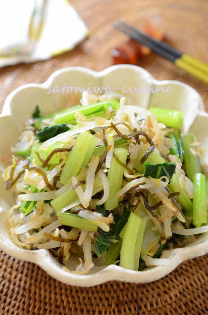 レンジで簡単!「もやしと小松菜の塩昆布和え」レシピ