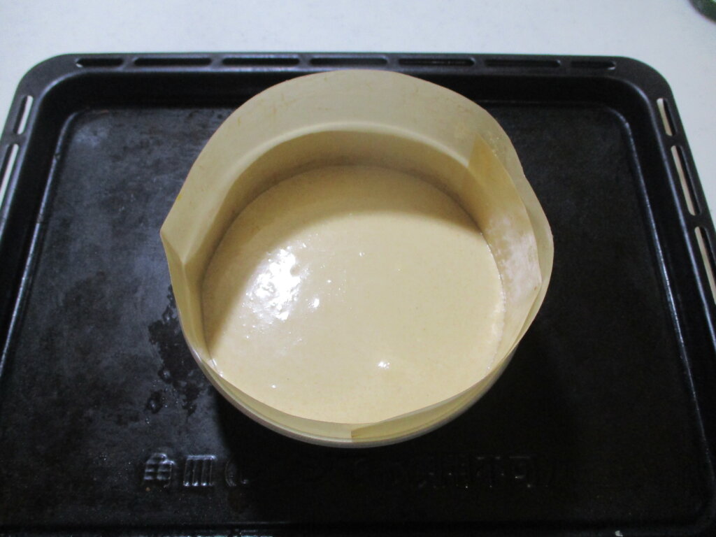 3,クッキングシートを敷いた型に生地を入れ、180度に予熱したオーブンで40分ほど焼く。