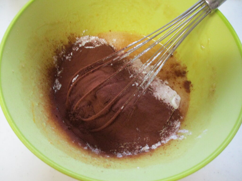 ココアパウダーはダマになりやすいので、ふるってから加えるときれいに混ざります。