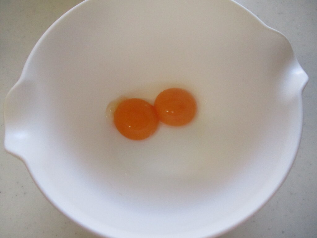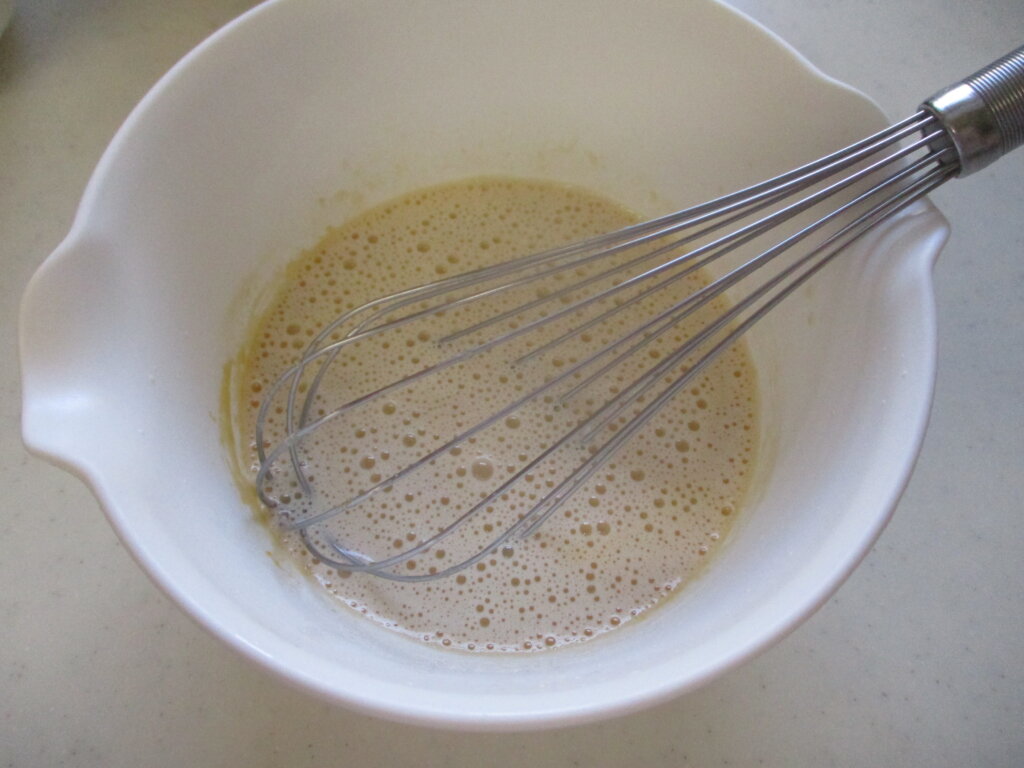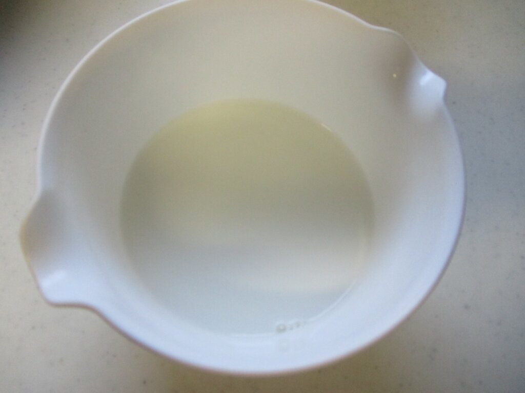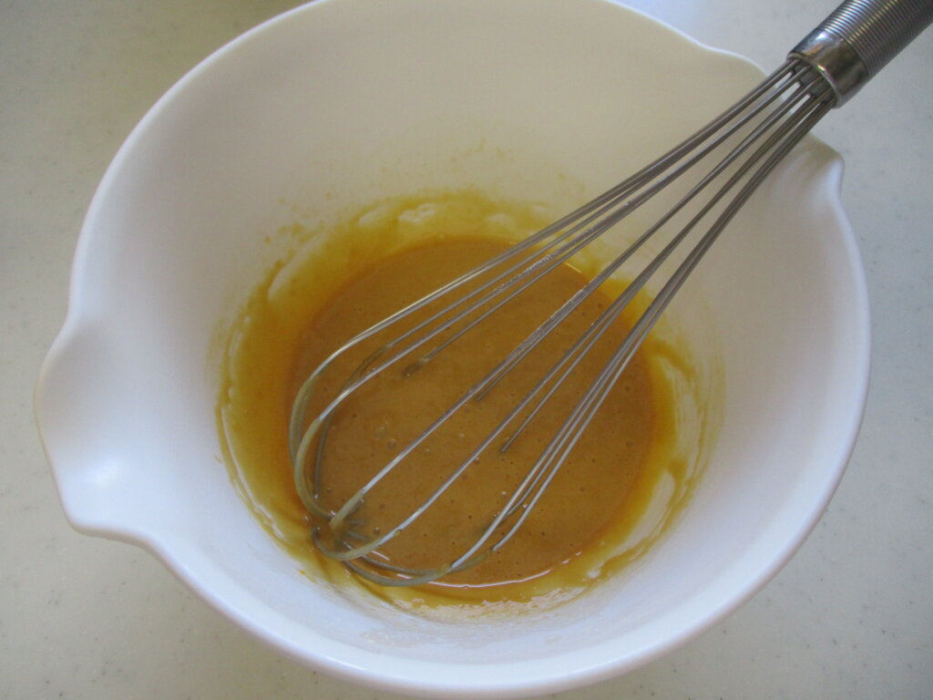レンジでもお鍋でのどちらでもよいですが、しっかり温めたあと、卵黄が固まらない程度の人肌くらいの温度まで下げておきます。