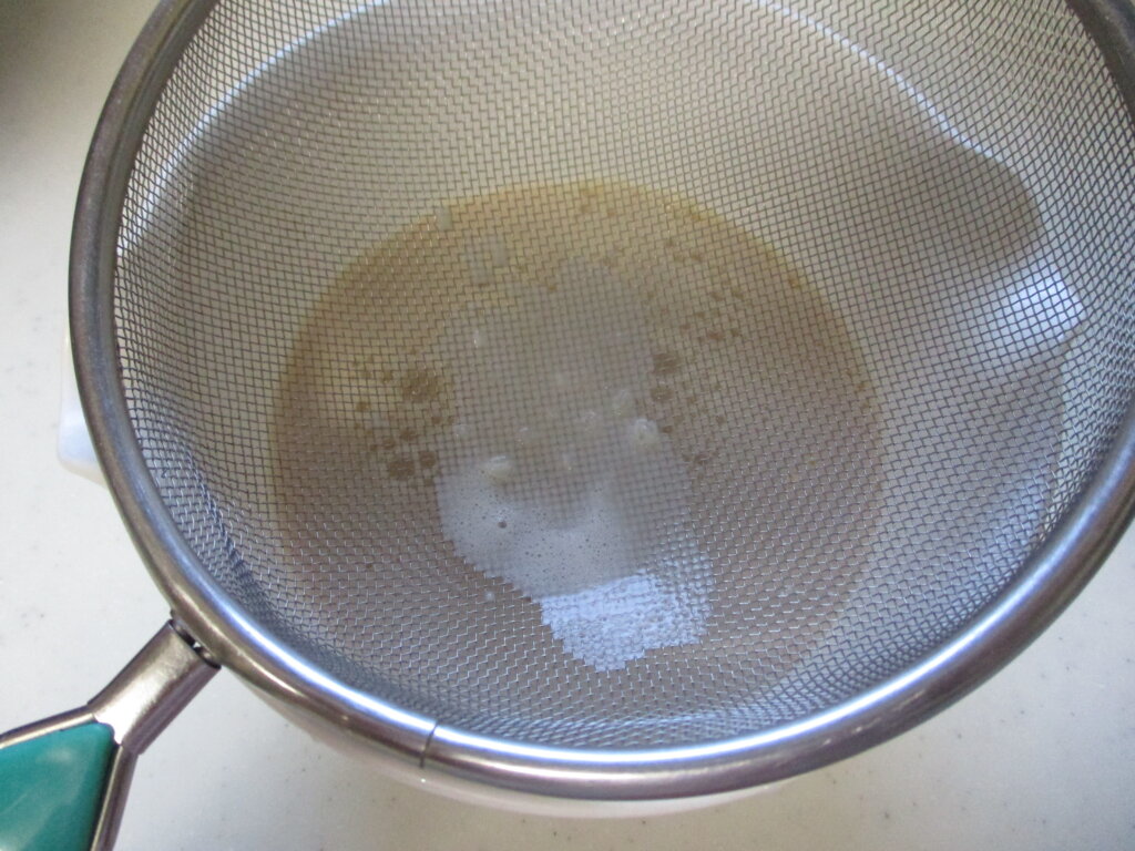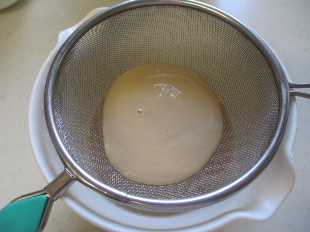右側は、混ぜたあと1日置いてから漉し器で漉したもの。1回目は半分以上の生地が漉し器の上に残りました。