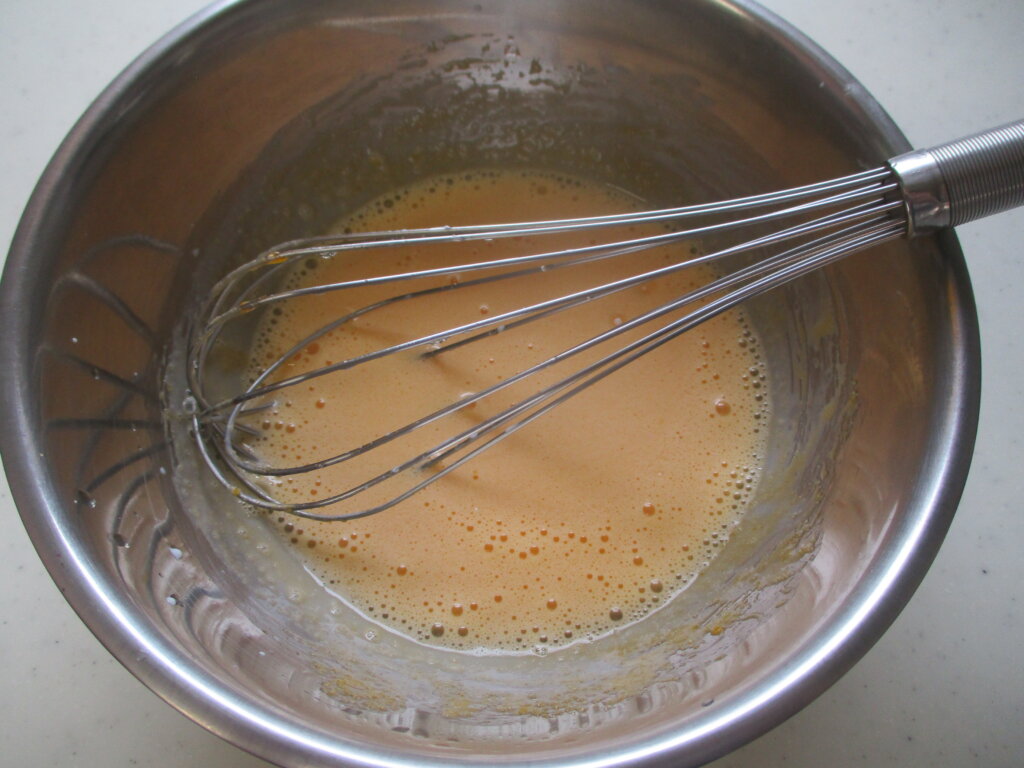 泡立て器でしっかり混ぜても大丈夫です。