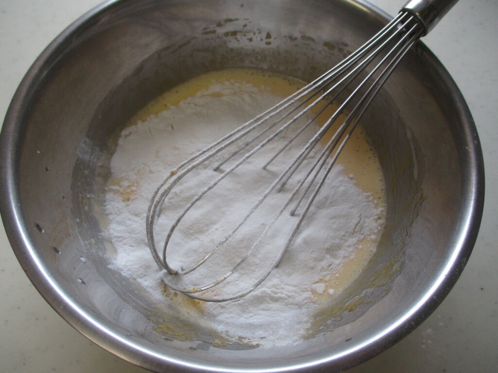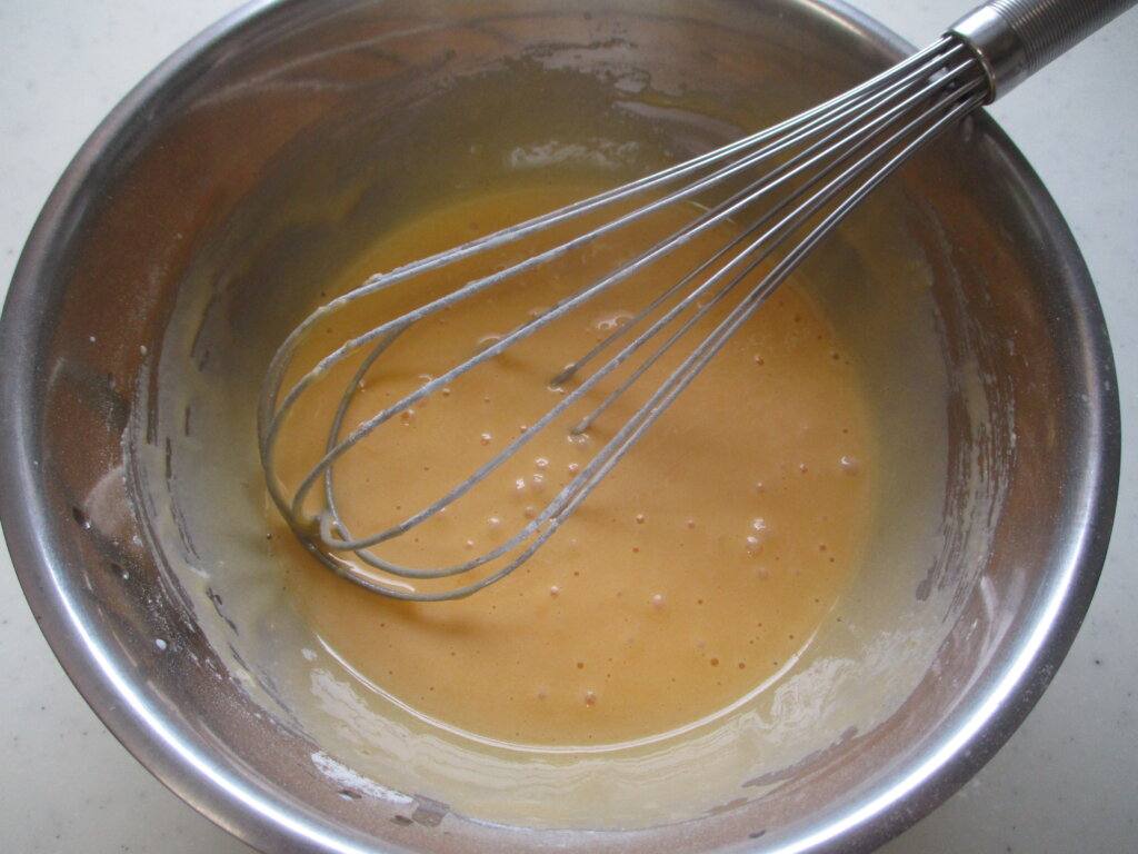 米粉はしっかり泡立て器で混ぜてください。