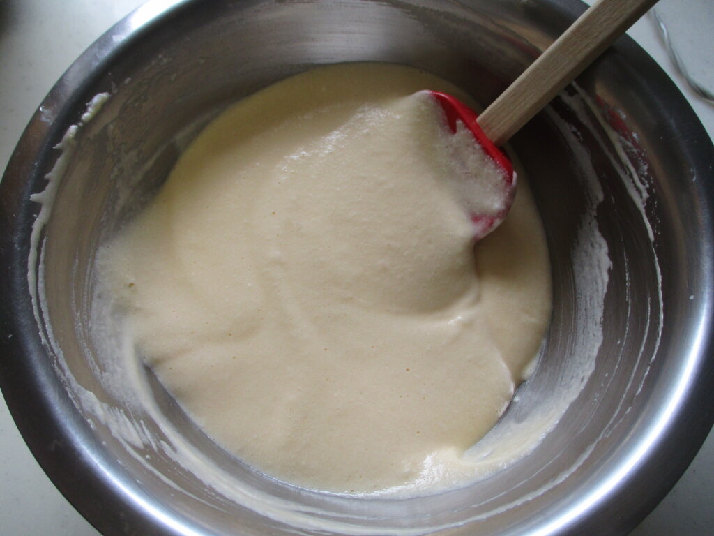 また、メレンゲと合わせる前にも、もう一度泡立て器で生地を混ぜることで生地が混ぜやすい柔らかさになります。