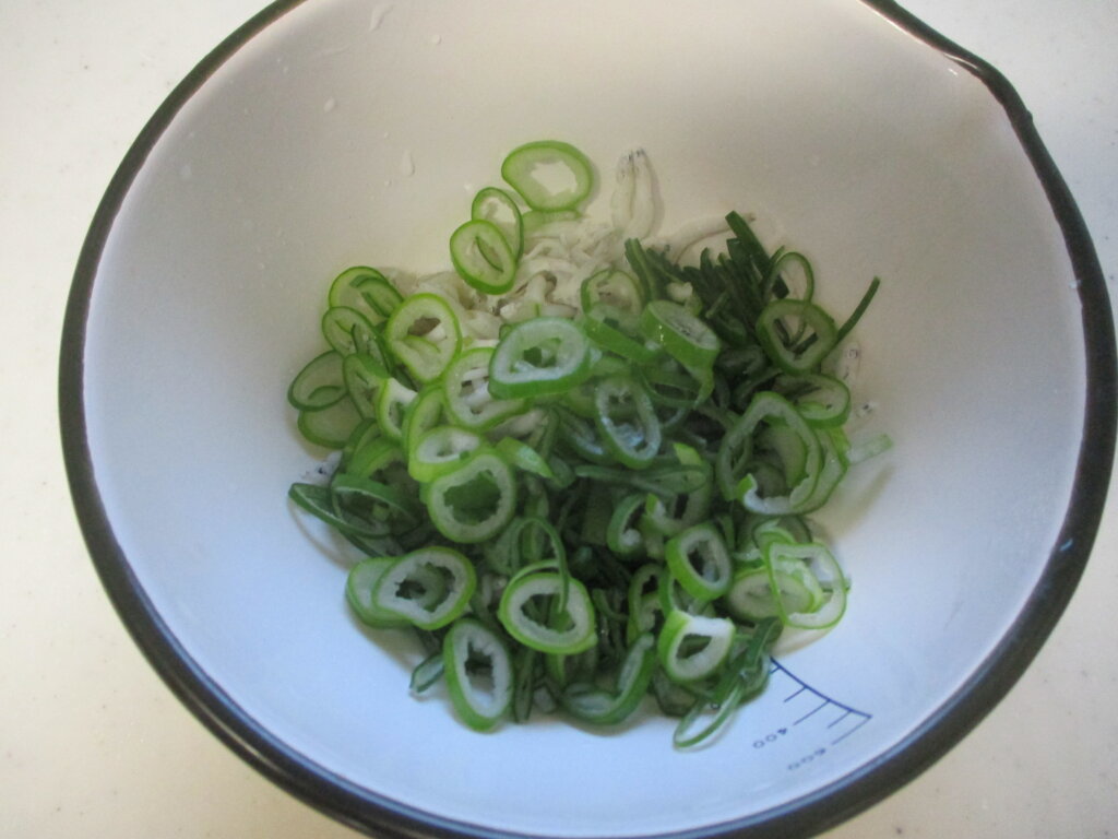 ネギしらすには、もともとしらすに塩分があるので、ほんの少し醤油をかけて味を締めて仕上げます。