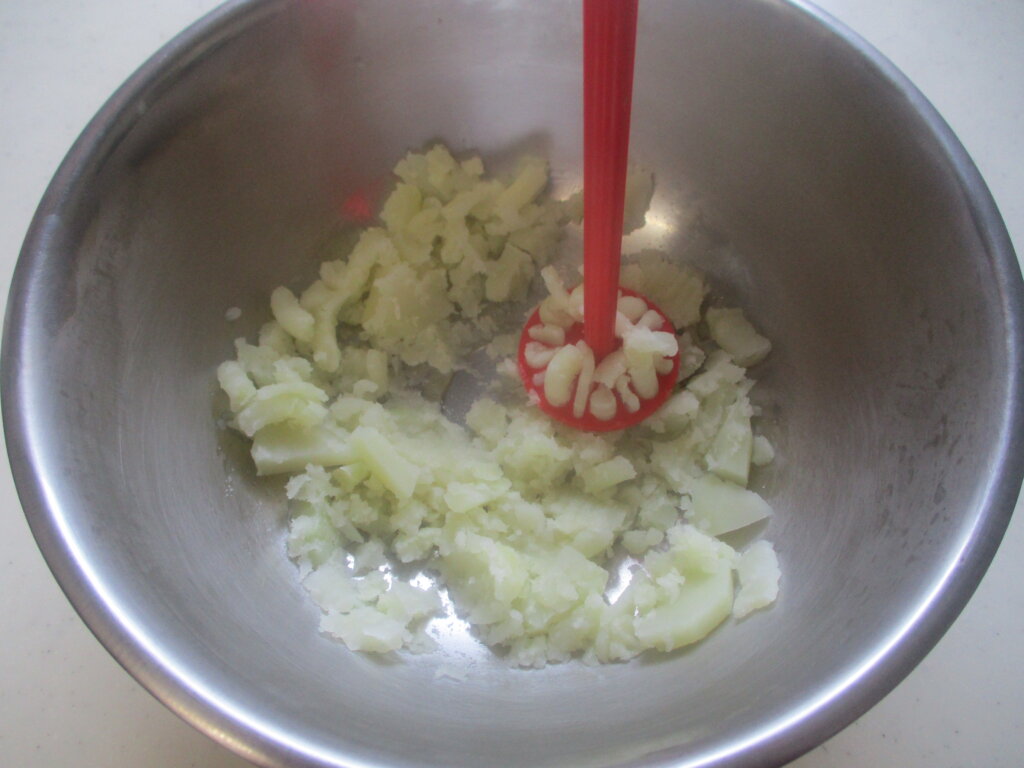 1,じゃが芋は皮をむいて適当な大きさにカットし茹でて柔らかくしたら水気をきってマッシュする。