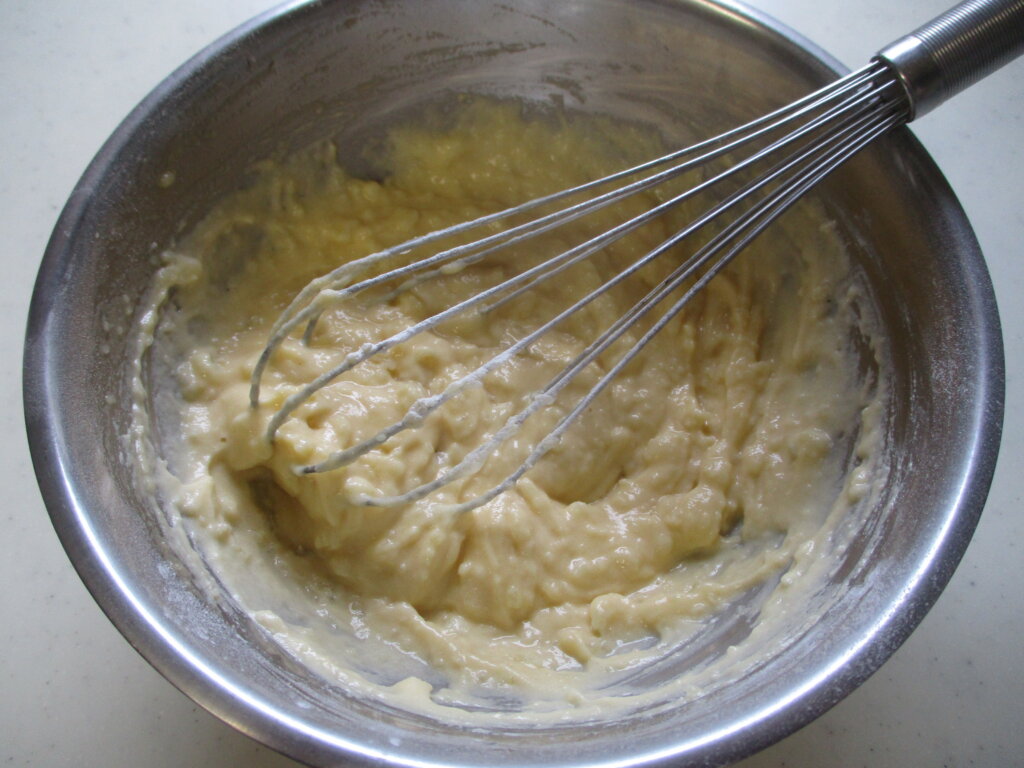 米粉はグルテンがないので、しっかり混ぜた方が仕上がりがふんわりします。