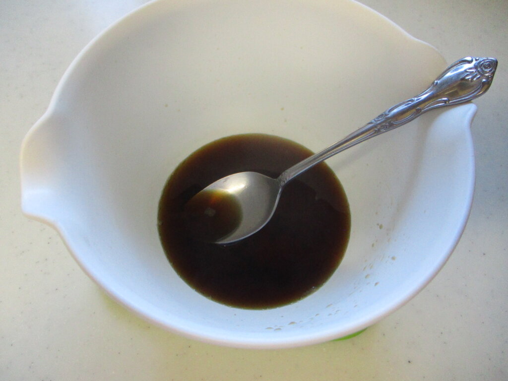 1,◎黒糖とお湯を耐熱ボウルに入れよく混ぜたら、600wのレンジで1分ほど加熱して黒糖をしっかり溶かす。