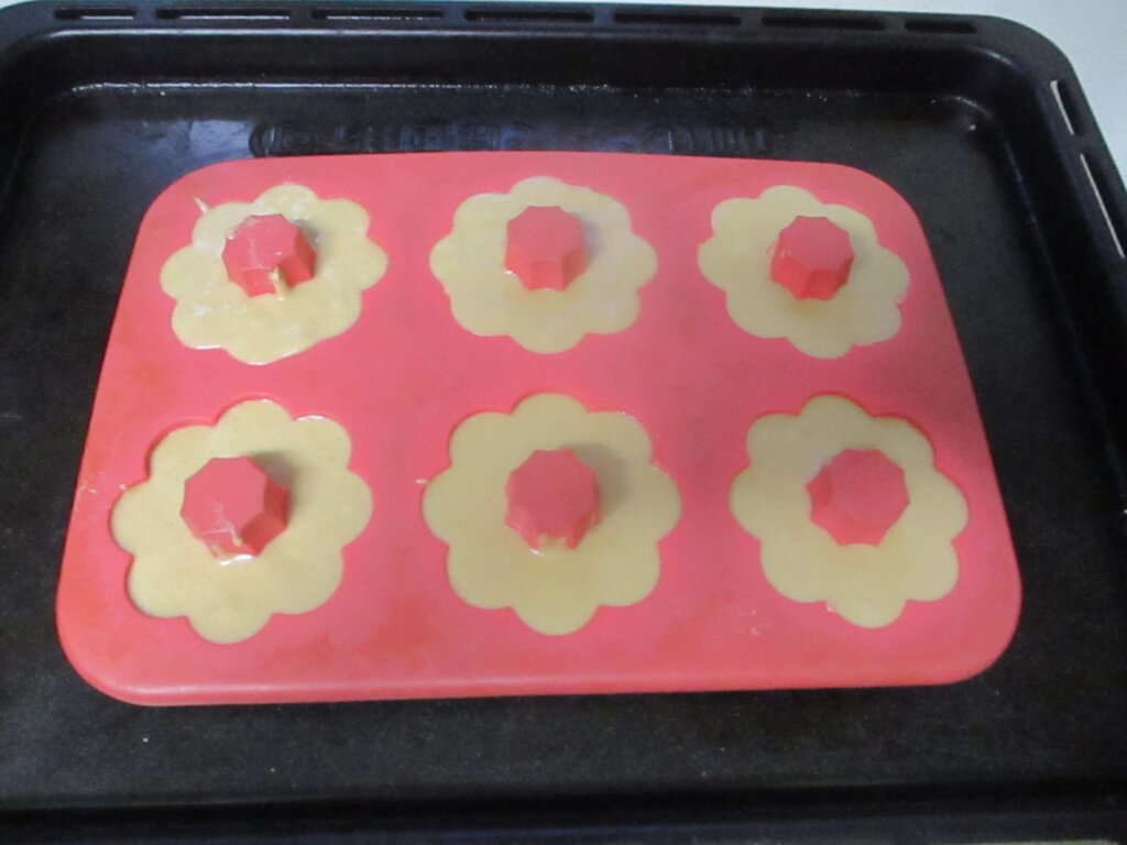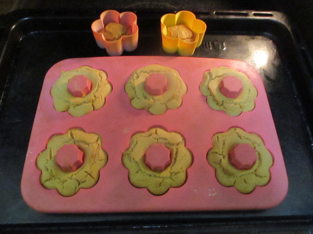 3,型に生地を入れトントンと空気を抜いたら、180度に予熱したオーブンで18分を目安に焼く。