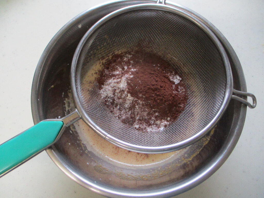 ココアパウダーはダマになりやすいので、ふるってから加えるときれいに混ざります。