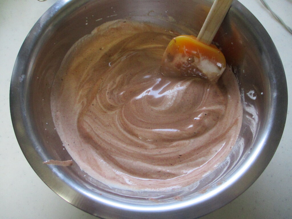 ココアパウダーを加えると、水分量などがいろいろ変わってくるので