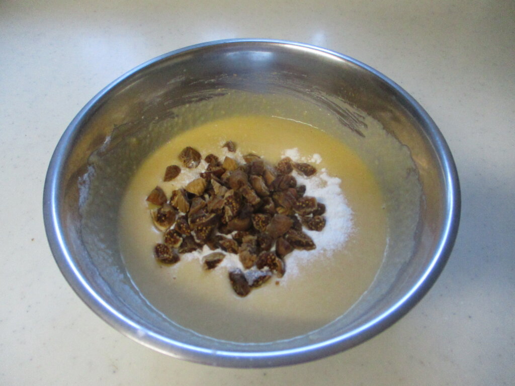 1,ドライいちじくを加えるときは少量の粉と一緒に混ぜ合わせる
