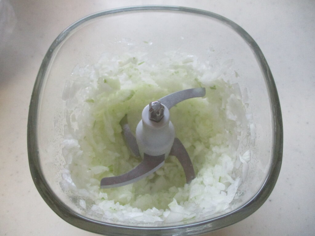 玉ねぎはできるだけ細かいみじん切りにするのがポイントです。