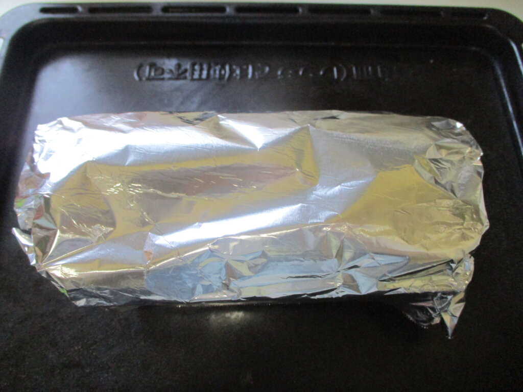 2,ホイルをかぶせて焼き縮みなく中までしっとり