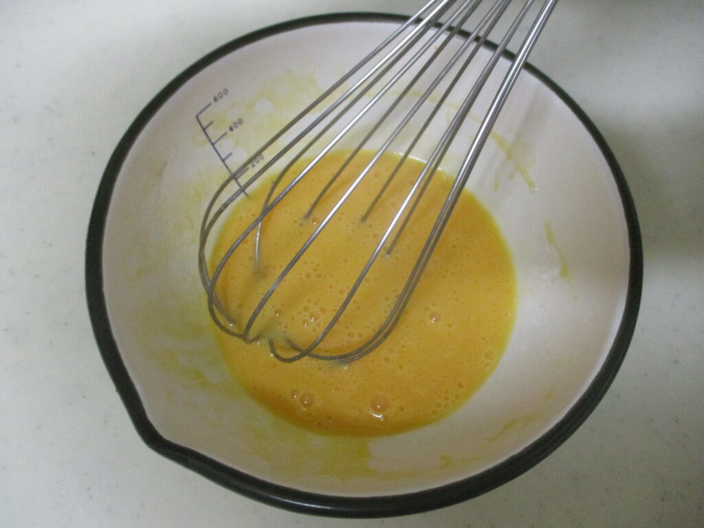 1,卵と油と豆乳をしっかりと混ぜ合わせておく