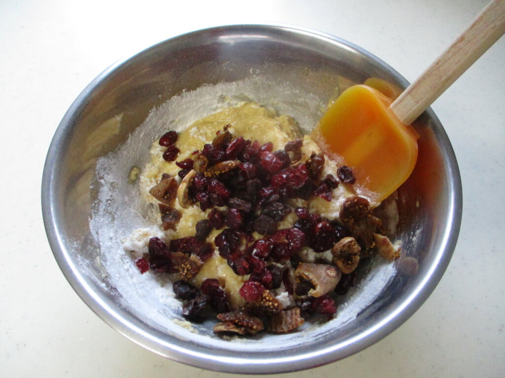 この方法で混ぜると、ドライフルーツが生地によくなじみます。